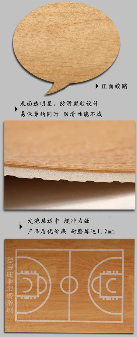 楓木PVC運(yùn)動(dòng)地板是仿楓木地板紋路開(kāi)發(fā)的一款產(chǎn)品,專(zhuān)門(mén)為籃球場(chǎng)地面而設(shè),鋪裝使用與實(shí)木楓木地板無(wú)明顯差別,但在價(jià)格上更勝一籌,表面采用透明層處理,清潔非常方便,楓木紋發(fā)泡均勻、厚度適中,可以有效減少運(yùn)動(dòng)跌倒對(duì)運(yùn)動(dòng)員的傷害。而健身房使用此款地板,簡(jiǎn)介大方,由于呈淺色設(shè)計(jì),可使光線(xiàn)發(fā)射達(dá)到最大效果,在空間方面得到視覺(jué)加強(qiáng)。
