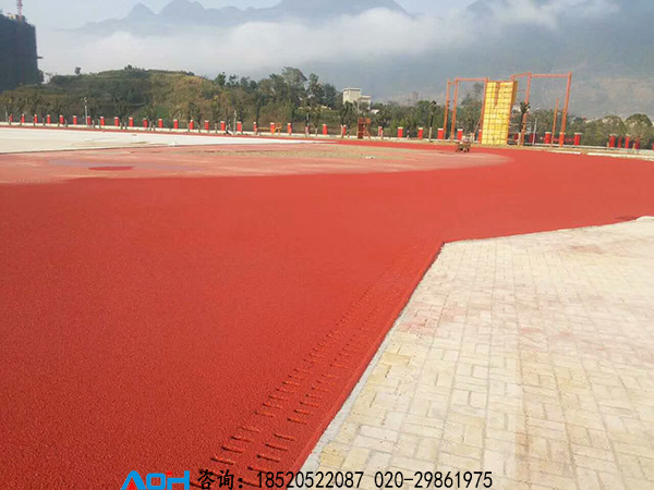 全天候運用,環(huán)保無公害,不褪色,不掉顆粒,透水、透氣,選用機械施工,平坦度佳。在鋼筋混凝土基礎(chǔ)上鋪裝佳。