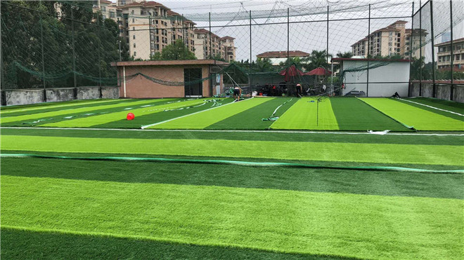3)如條件許可,可用水噴灑場地,使石英砂及橡膠顆粒更好的固定草坪,并使草坪更加干凈。