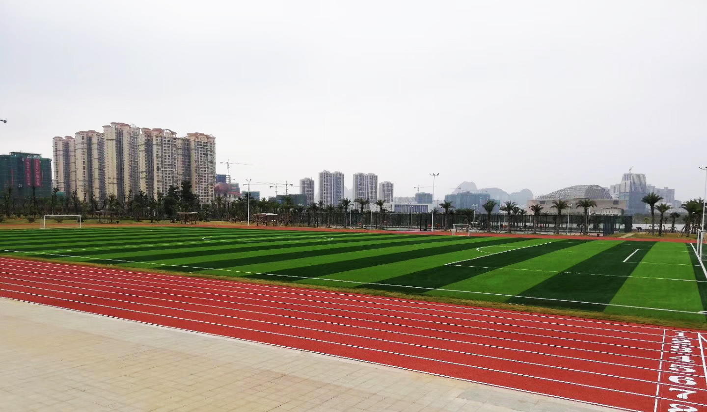 4)需說明的是,新施工的場地,石英砂和橡膠顆粒可能還有些不平整,在以后的使用中將會日趨完美。當然,如果屬于石英砂和橡膠顆粒大范圍缺損而造成的不平整,則需要及時的補充石英砂和橡膠顆粒。