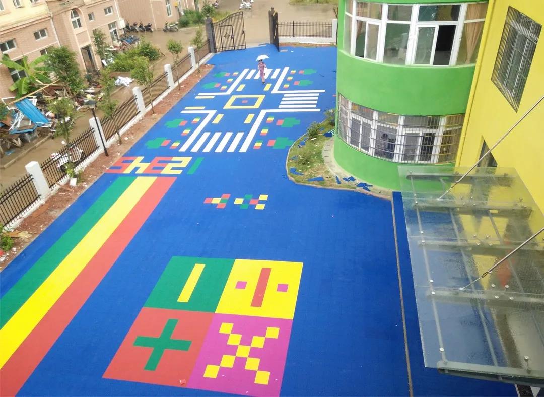 幼兒在場地上玩耍時,踩在地板上,腳感舒適,可降低摔倒后的痛感。